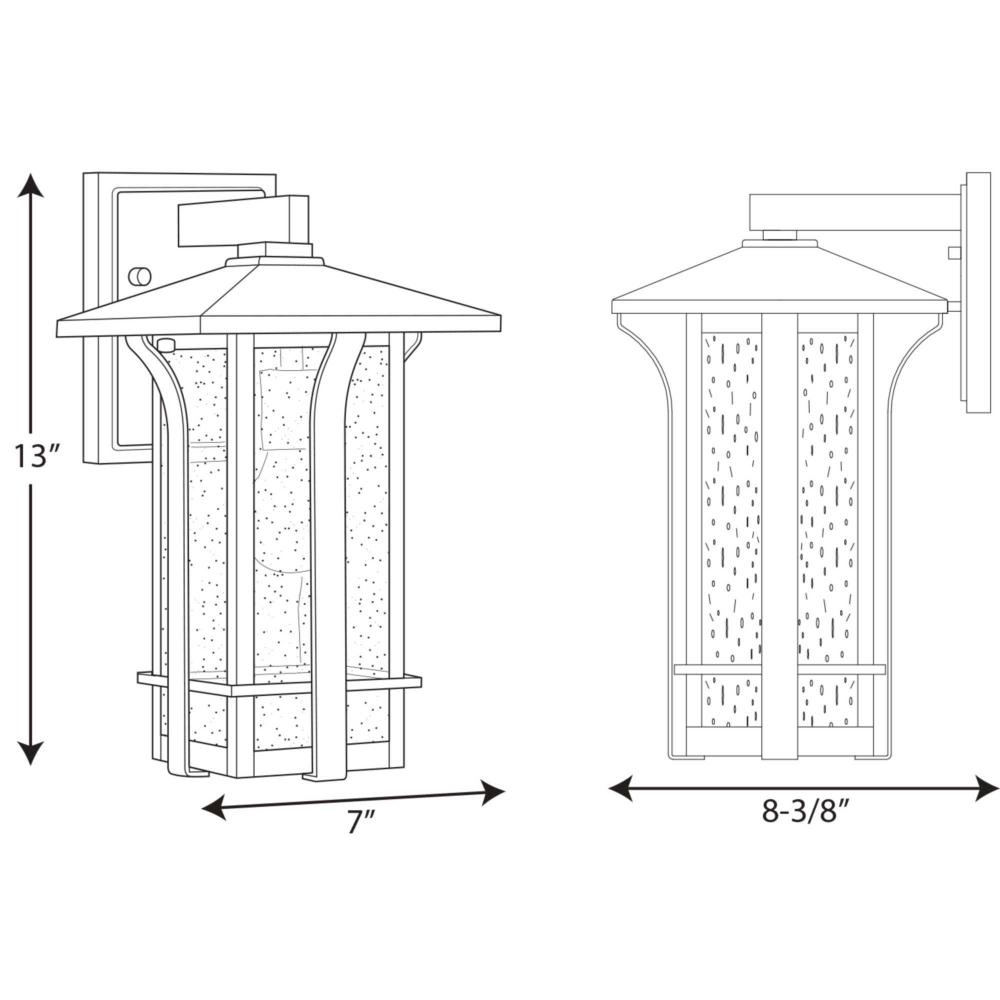 Bold scale and Craftsman inspiration adds handsome punctuation to a home’s entry and facade;Its deep finish contrasts against the gauzy seeded-glass shade;The small wall lantern makes a cheerful greeting on either side of an entry door, flanking an outdo