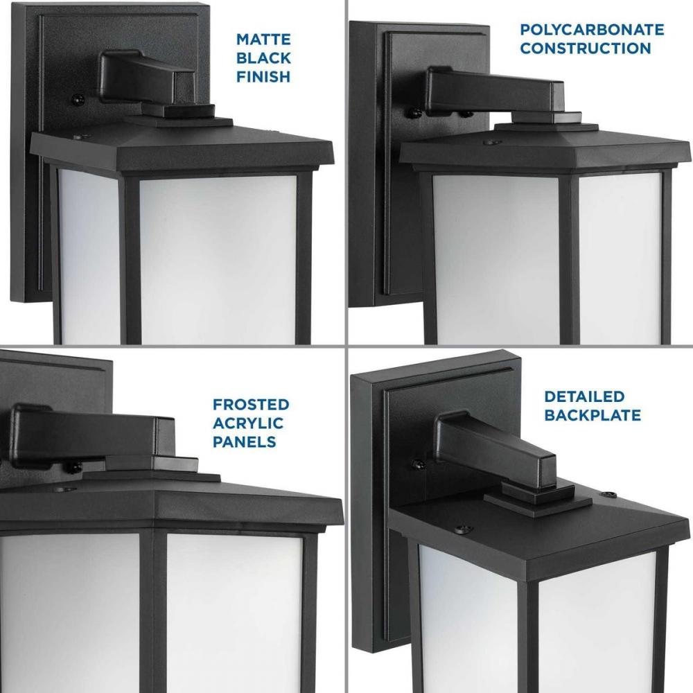 Ideal for a porch, patio, deck, garage, barn, entryway, foyer, or bedroom;Perfect for traditional style settings;Classic textured black finish;Frosted acrylic shade;Includes installation instructions and mounting hardware;Use 1 medium base base bulb that i