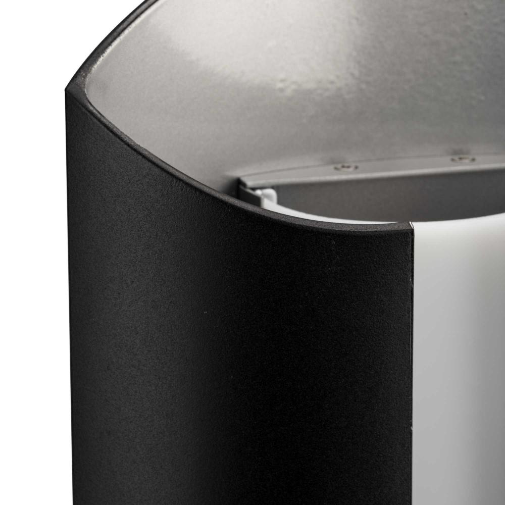 The light's cylindrical frame is finished in classic black