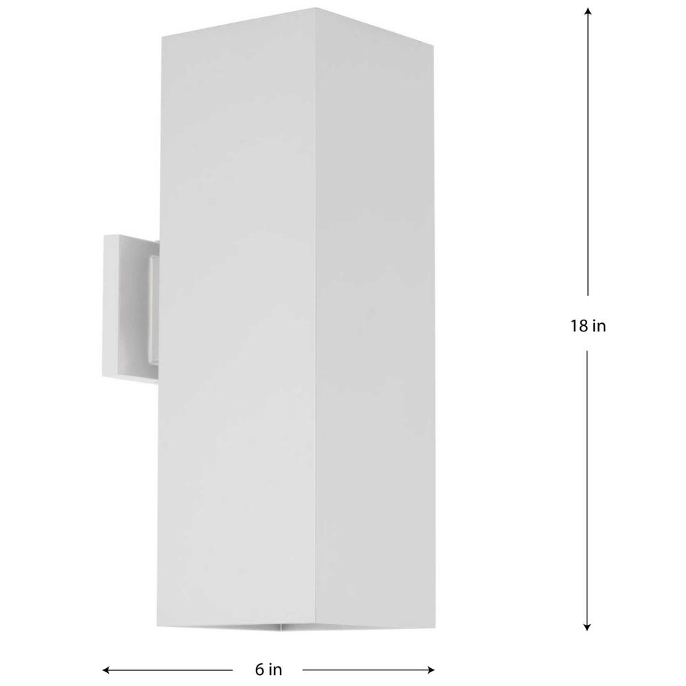 6" LED Square Cylinder with heavy-duty aluminum construction, die-cast aluminum wall bracket. UL listed for wet locations. Powder coat for chipping and fading resistance. White finish. Wet location listed when used with P860047 top cover lens (sold separately).
