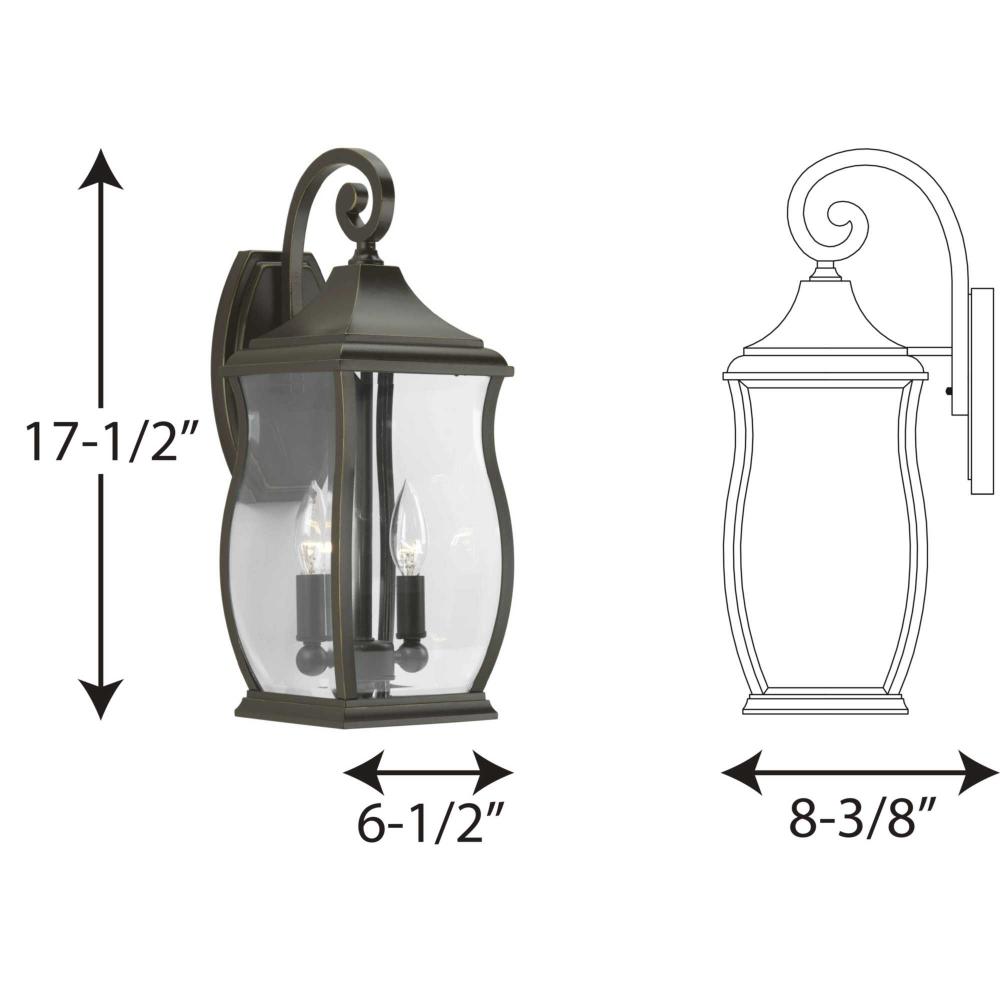 Enjoy the simple elegance of traditional styling in this two-light wall lantern. Township's clear beveled glass and Oil Rubbed Bronze finish contains notes of New England-inspired style for this new outdoor lantern collection.