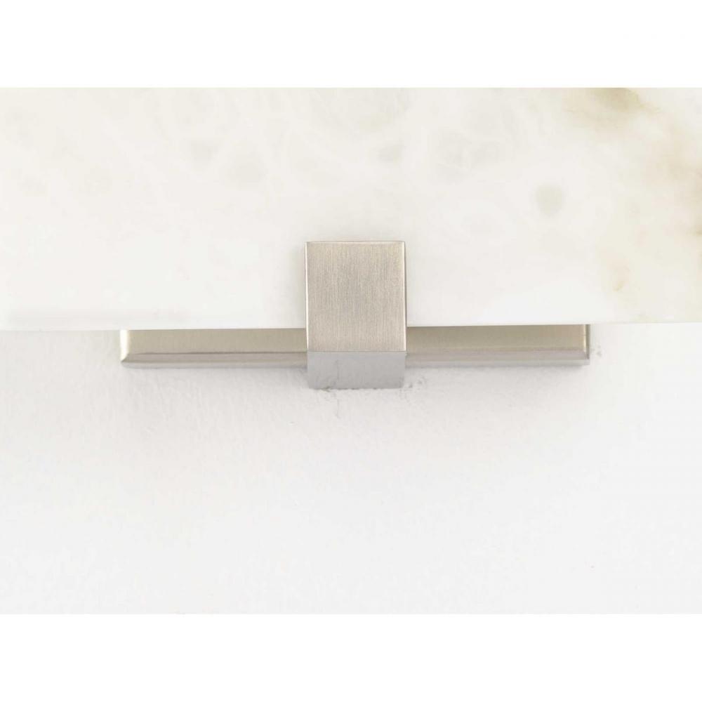 This wall sconce does more than just provide light -- it makes a serious design statement. A raw and organic square shade handcrafted from stone dust demands attention as it creates an earthy, muted glow. The shade is held in place by a minimalist brushed nickel frame that romanticizes any space it calls home.
