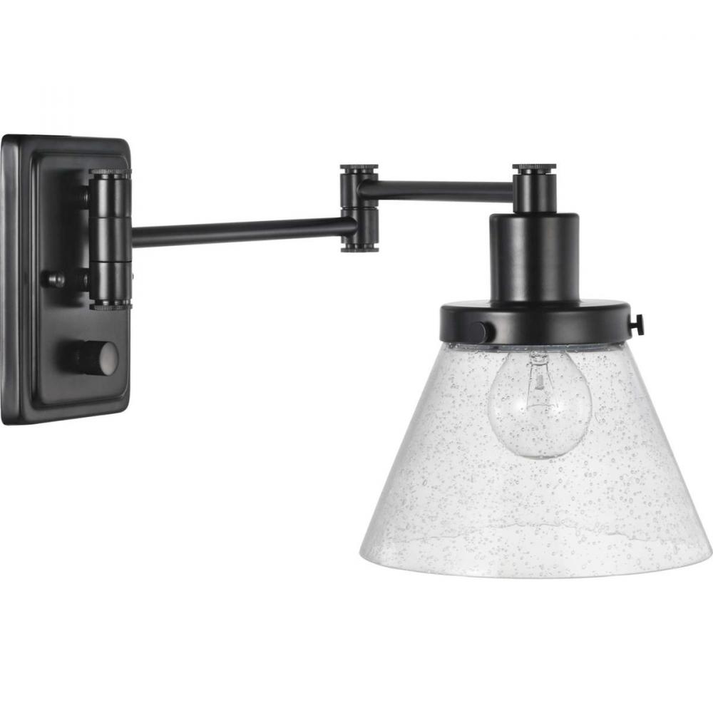 Enjoy Focused Task Lighting With The Industrial Demeanor Of This One-Light Swing Arm Wall Bracket. A Clear Seeded Glass Shade Is Ready To Provide You With Focused Task Light Wherever Illumination Is Called Upon. The Light Fixture'S Signature Adjustable Arm Is Coated In A Black Finish And Makes This Wall Light A Favorite Choice For When You Want To Read Your Favorite Novel Before Bed.