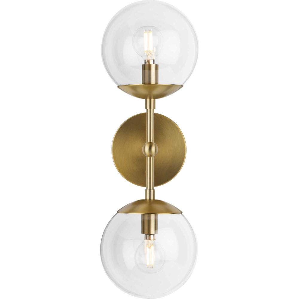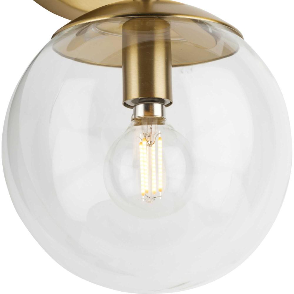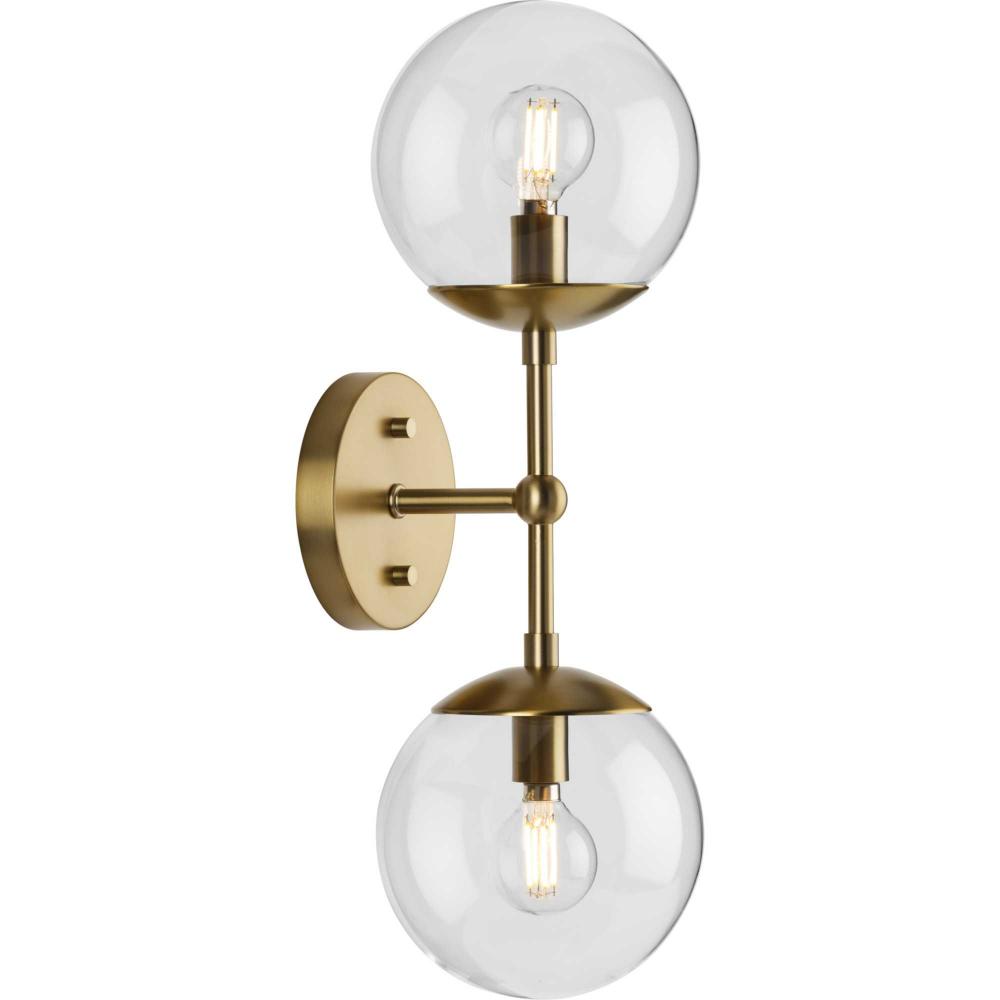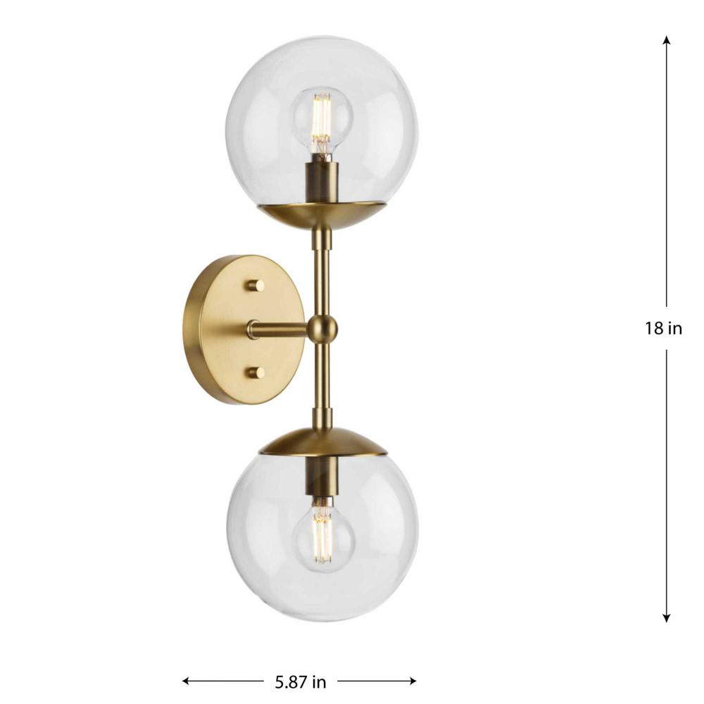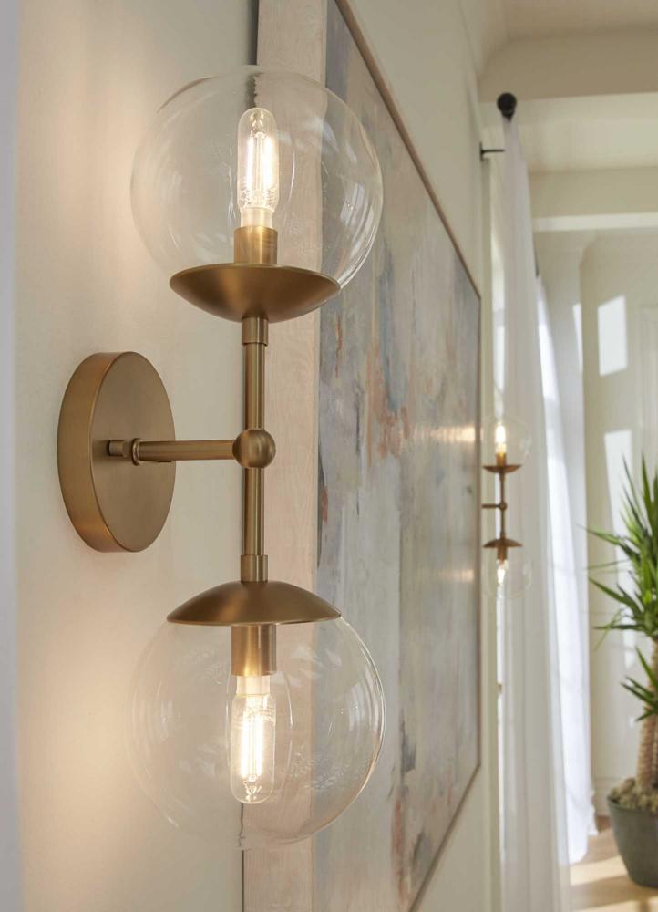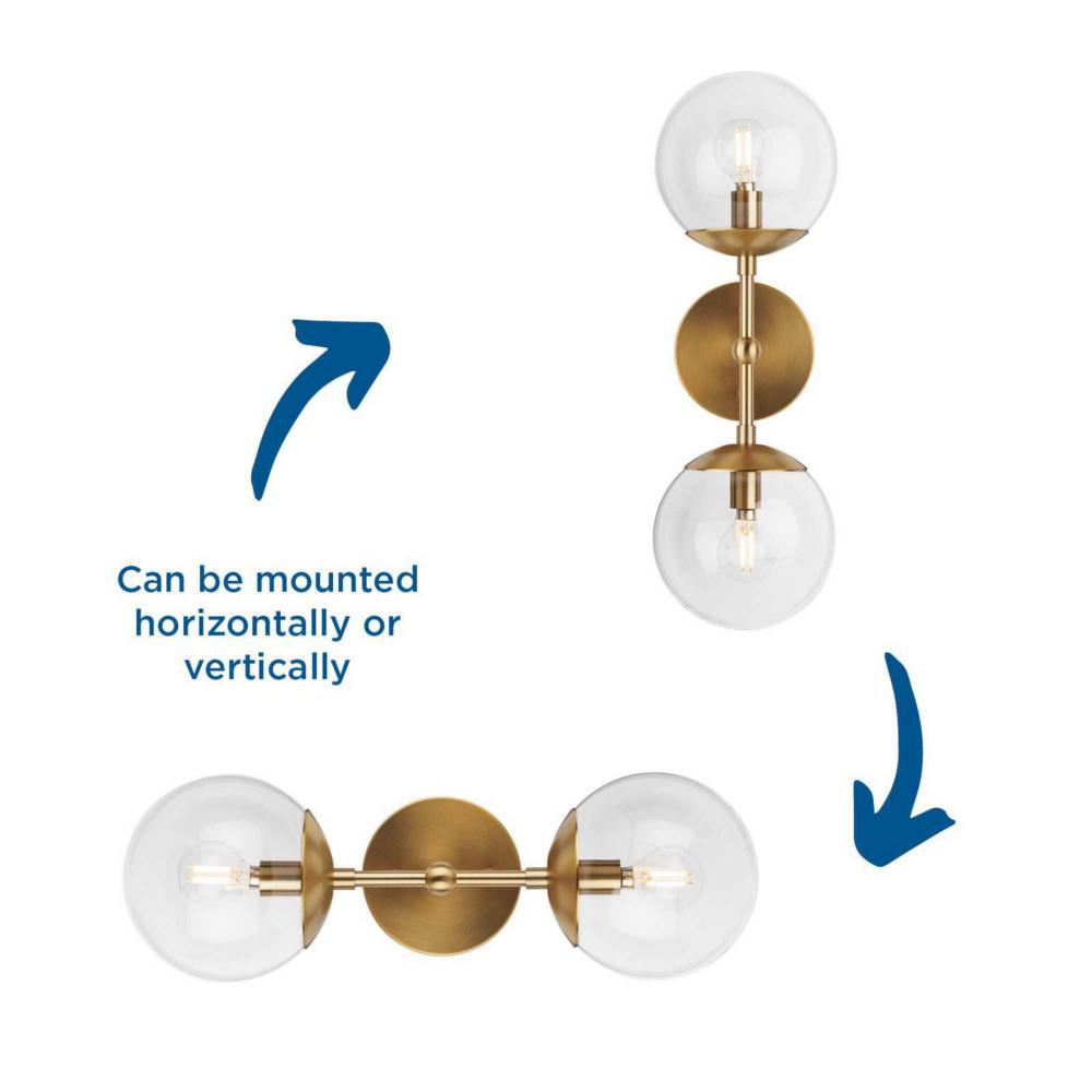 Long lines ending in clear glass globe shades define the modern aesthetic of the Atwell Wall Sconce. One central stem is capped by clear glass, creating bright illumination from the light source glowing within. Atwell fits beautifully into mid-century modern and contemporary settings, delivering accent illumination to bedrooms, bathroom vanities, dining and living rooms. This versatile fixture can be mounted vertically or horizontally as desired.