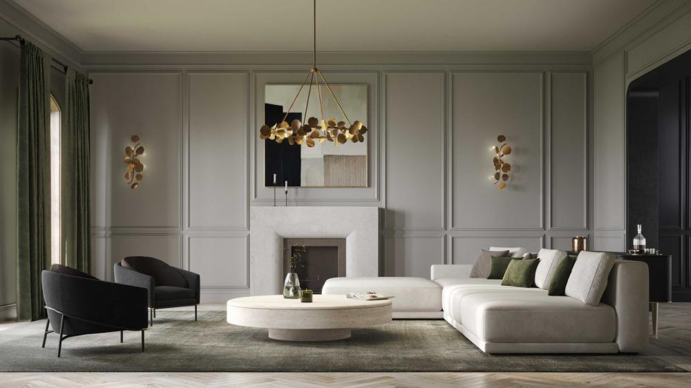 Natural, whimsical leaves and sophisticated lines fits beautifully in transitional, luxe, and modern organic rooms