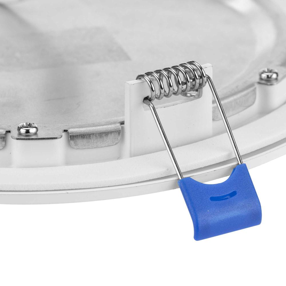 The trim features a gasket to close off the ceiling opening and spring clips ensure a secure flush mount to the ceiling surface.