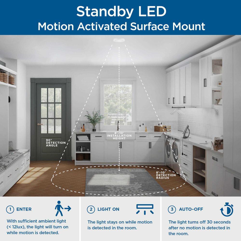 This surface mount LED light features a motion sensor, so it immediately turns on when you enter your closet, pantry, garage, patio, porch and more