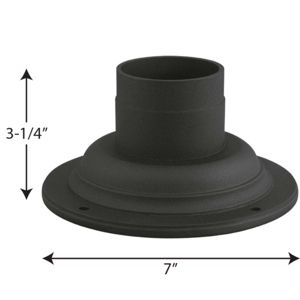Black cast aluminum for mounting post lanterns on pedestals or walls.