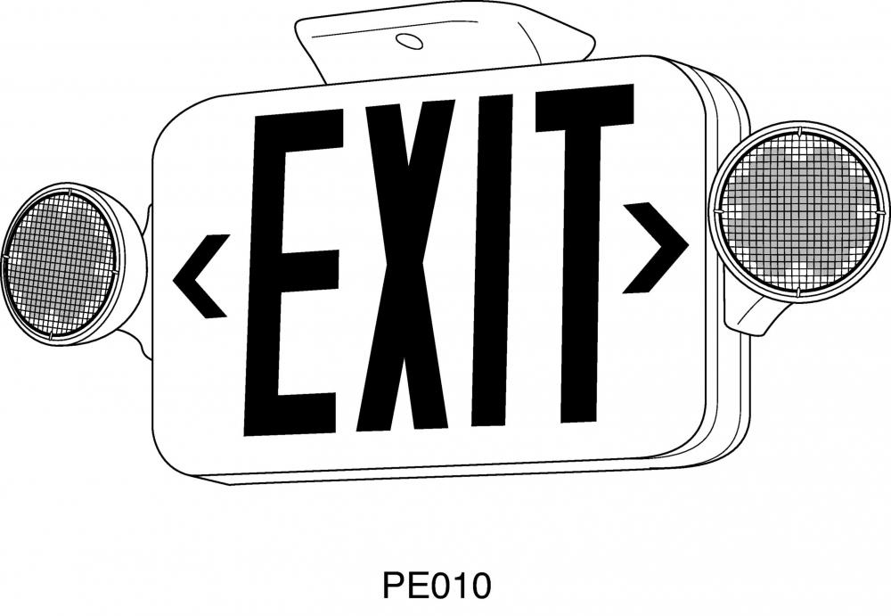 LED Exit Sign Combo, Face style: Universal, Color: White, Number of Lamps: 2, Voltage Rating: Dual-voltage 120 or 277 VAC. The PECUE Series can be applied in stair-wells, hallways, offices and other commercial applications. Green Lettering.