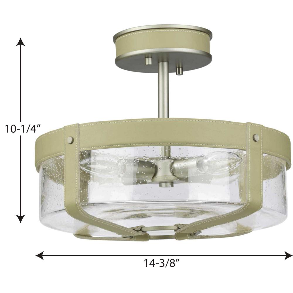 The Rockdance semi-flush ceiling light in Antique Nickel is part of a graceful series fashioned from surprising design elements that, together, form a signature look by designer Jeffrey Alan Marks. The seeded glass semi-flush is trimmed in beige leather strapping, giving substance and form to function. With the styling of a bespoke handbag or boot, the details that punctuate this exciting group are certain to become design favorites for generations. This family of fixtures is part of the Jeffrey Alan Marks Point Dume™ lighting collection which celebrates a curated mix of yesterday and today, distilling both industrial and artisanal influences.