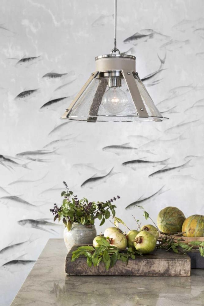 The Rockdance pendant in Antique Nickel is part of a graceful series fashioned from surprising design elements that, together, form a signature look by designer Jeffrey Alan Marks. The pendant hangs by industrial style hooks and is powered by a braided metal cable, giving substance and form to function. A cap of Antique Nickel tops a seeded glass shade and is trimmed with beige topstitched leather strapping. This family of fixtures is part of the Jeffrey Alan Marks Point Dume™ lighting collection which celebrates a curated mix of yesterday and today, distilling both industrial and artisanal influences.