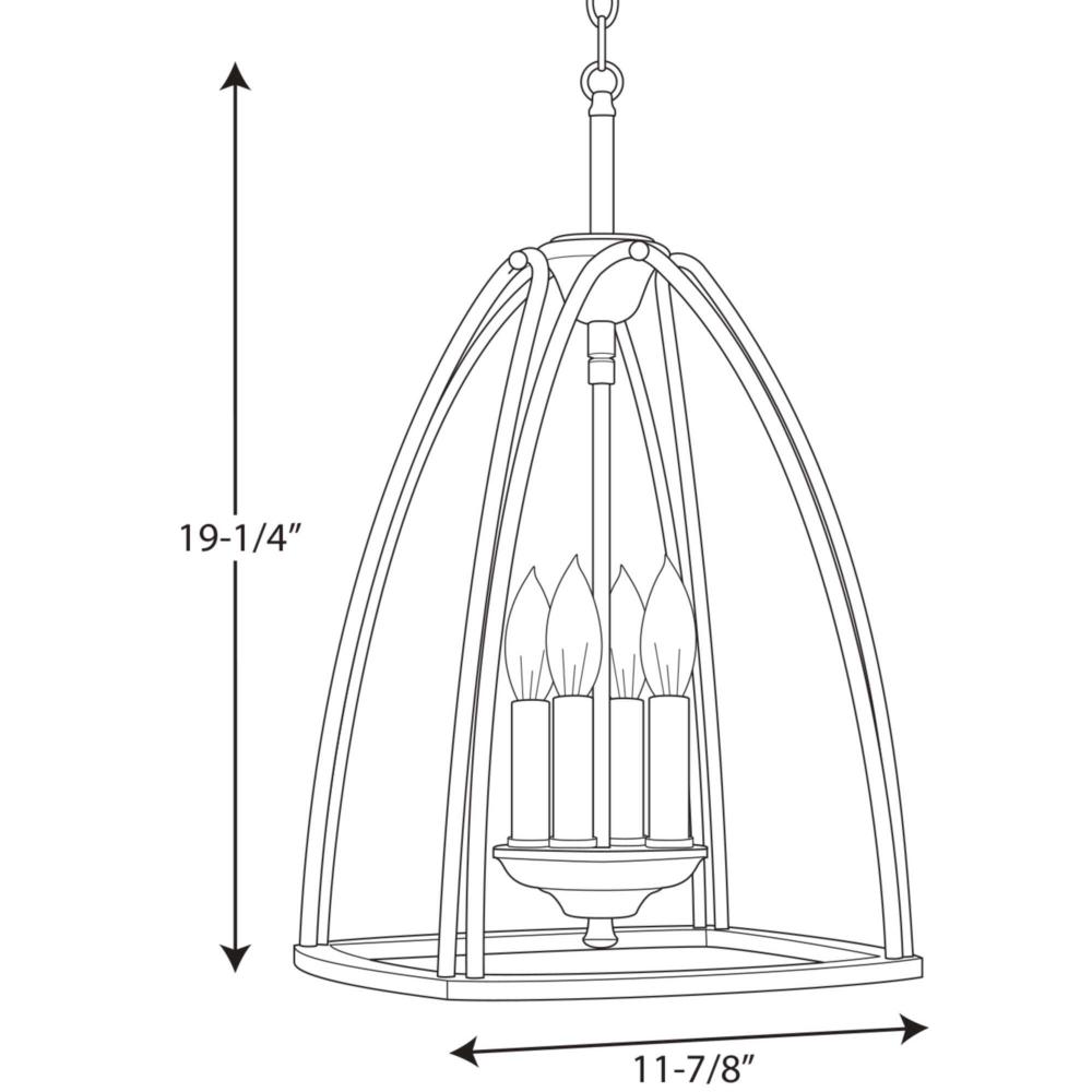 The four-light 11-7/8" foyer in the Tally Collection embraces a simplified classic form that is updated with modern inspiration. The open foyer with the four-light cluster offer visual interest and enhance relaxed environments. This simple foyer goes with many styles and families in the Progress Lighting line. Brushed Nickel finish.