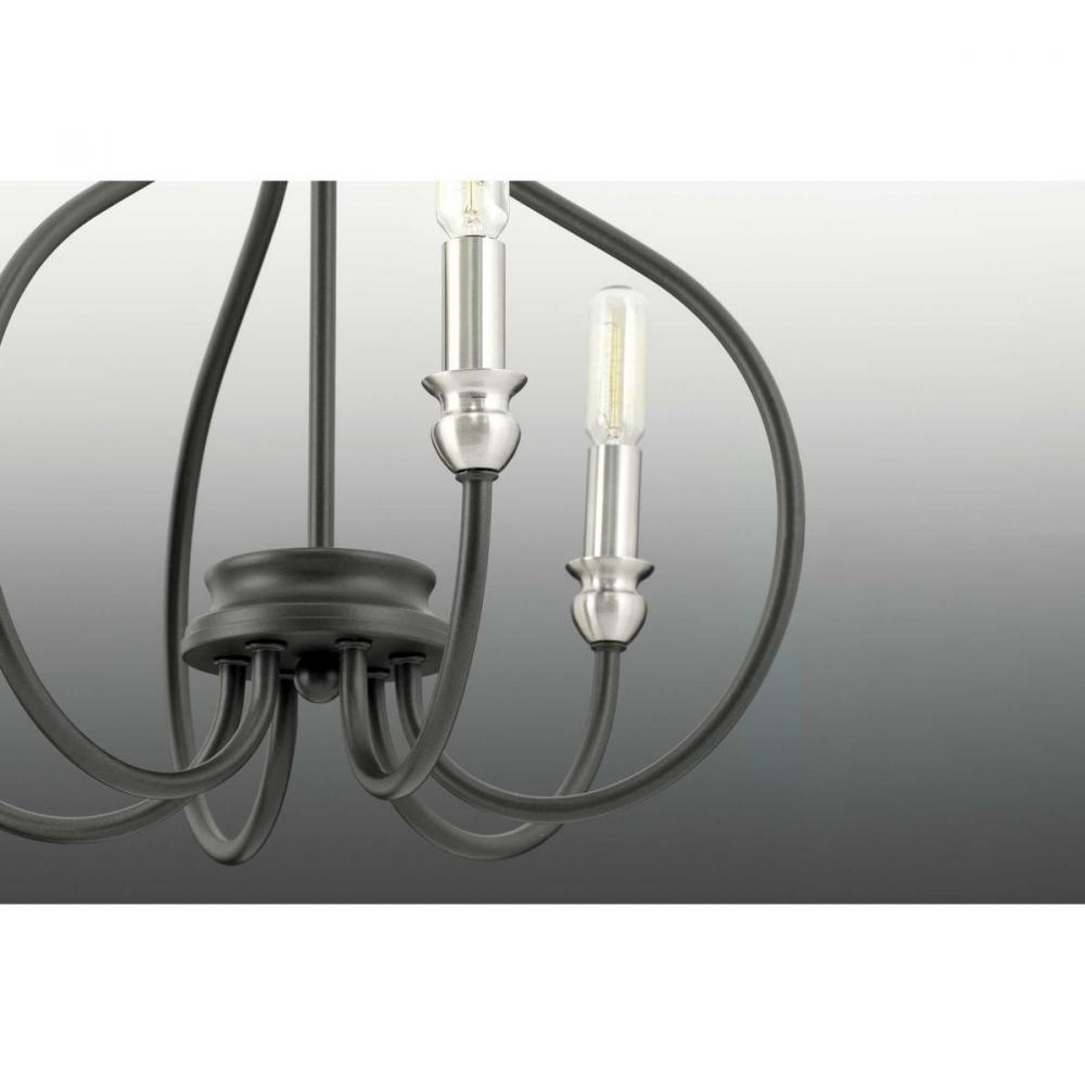 An updated traditional family, Whisp adds distinction to interior spaces. Candles with brushed nickel accents complement a gracefully scrolled frame in a cool Graphite finish. The three light semi-flush convertible can be chain hung or semi-flush to ceiling.