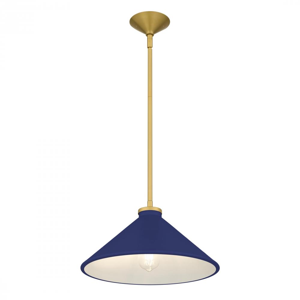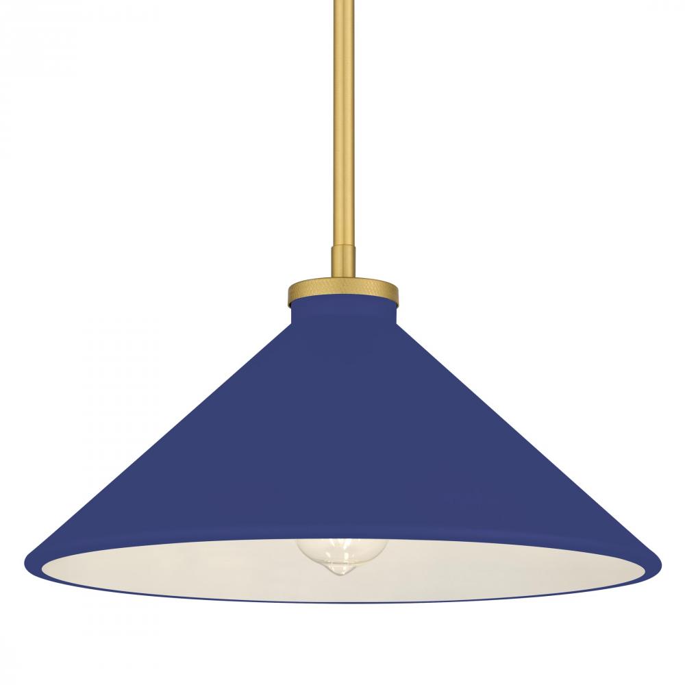 With a nod to mid-century charm, the Bradbury pendant light brings warmth and personality to any space. Its brushed gold accents gleam softly, setting off the crisp, conical shade available in a spectrum of colors—from serene light blue and fresh light g
