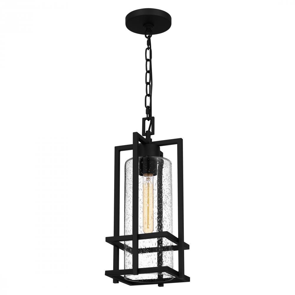 Damien features clear seeded glass that casts a beguiling glow. Suspended from a sturdy chain, this piece features a goes-with-everything earth black finish. Although it’s designed for outdoor use, the light would also illuminate a foyer or entryway.