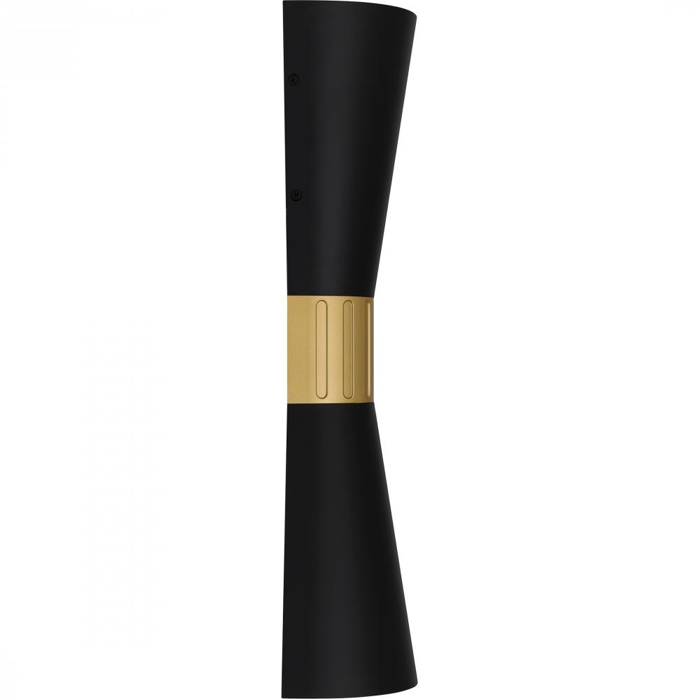 Embellish your homes exterior with the modern design of Dexter. The bold geometric silhouette is finished in matte black and features a gold textured band for an added pop of style and luxury. This outdoor sconce opens at the top and bottom to allow for ma