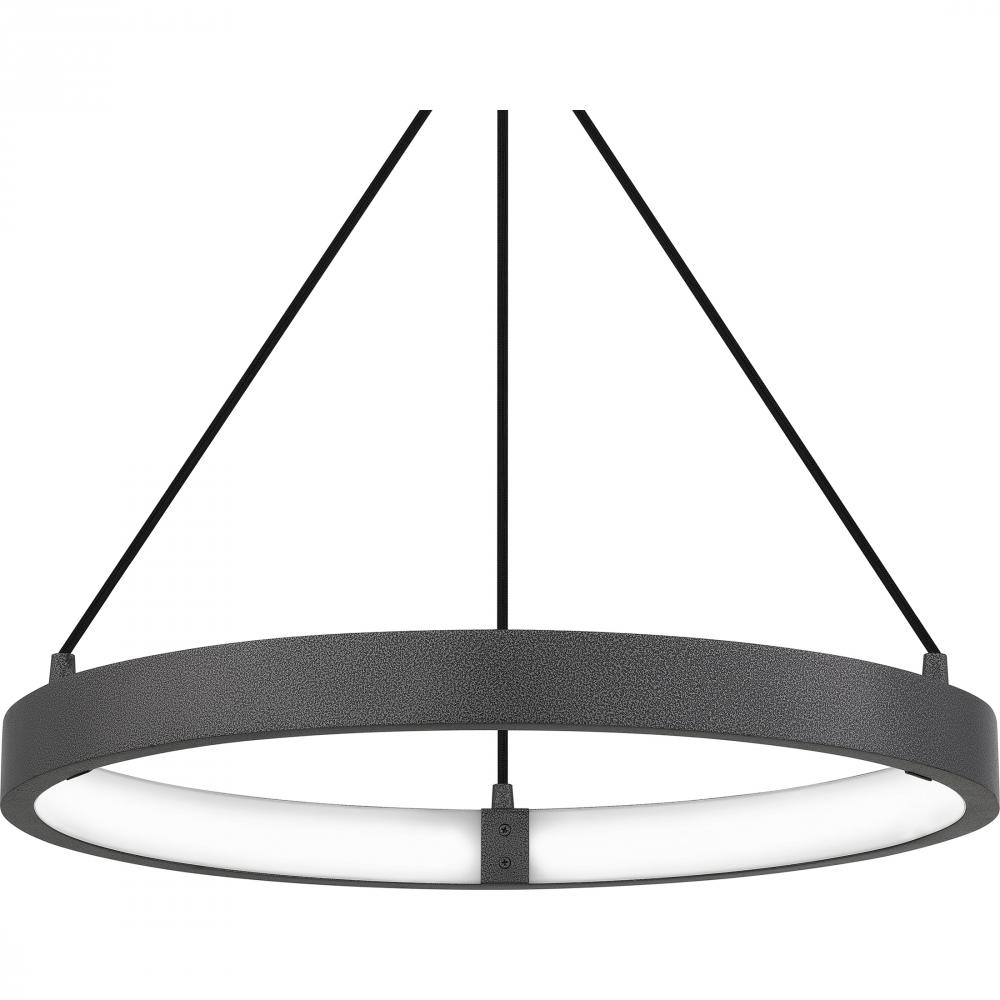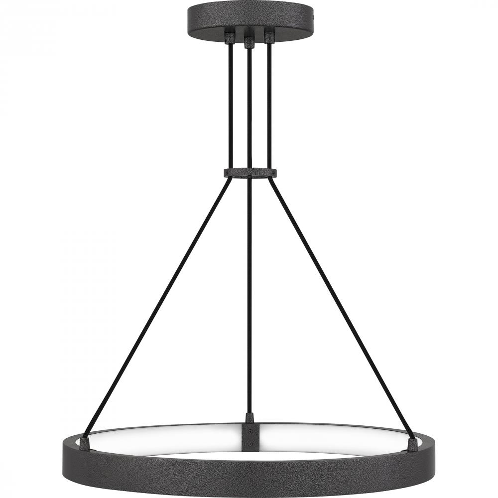 Create a sleek and contemporary look with the Drury pendant light. The simple pewter cast iron frame comes alive through an integrated LED light source, emitting a soft halo-like glow. Part of the popular Platinum by Quoizel series, Drury makes the perfect