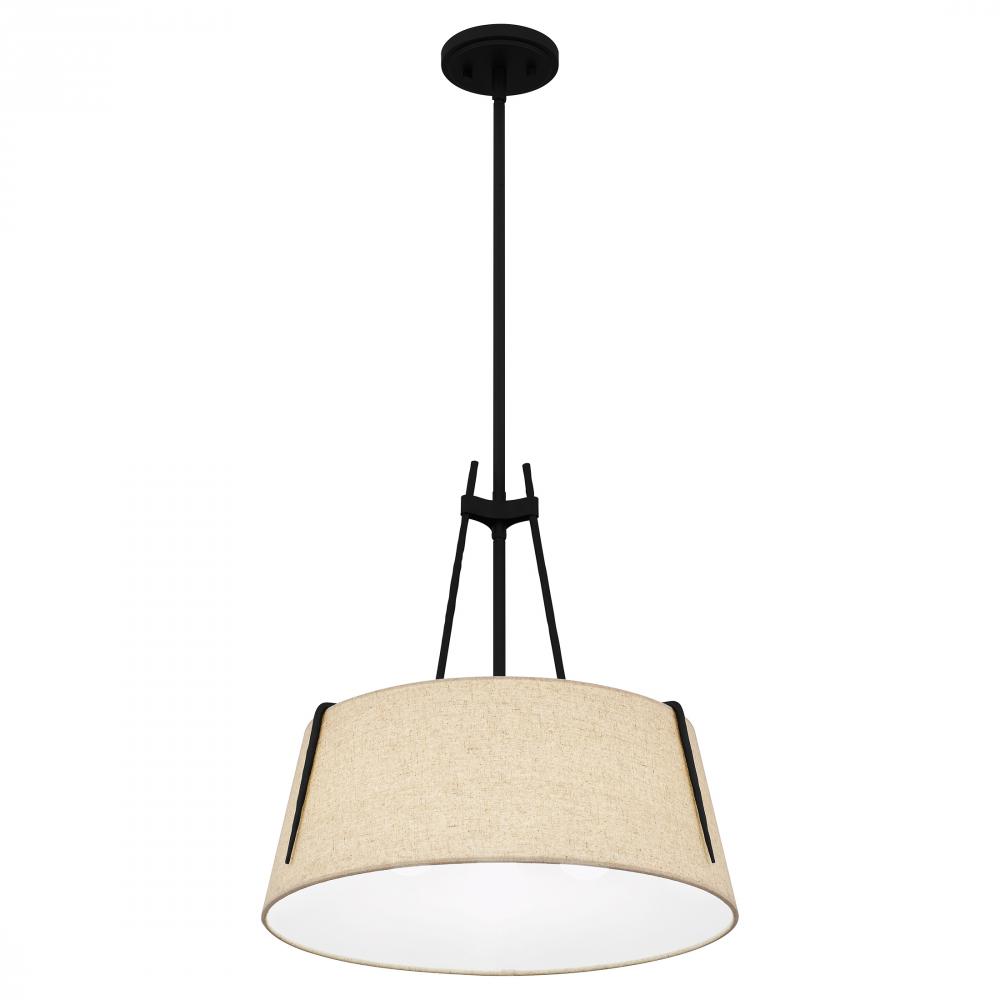 Leona’s natural linen shade adds rich texture to its striking, on-trend design. Linear iron details provide sumptuous contrast to this mini pendant or semi-flush mount, creating a tasteful addition to transitional spaces. A matte black finish rounds out