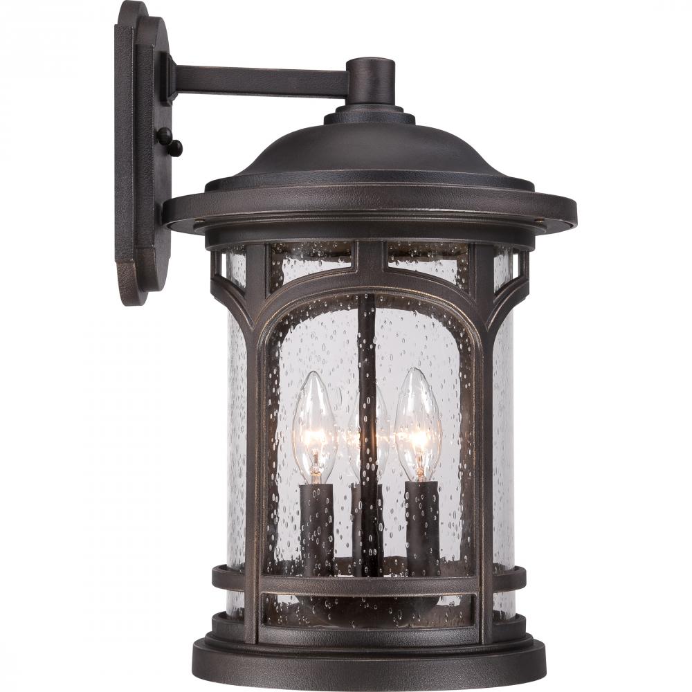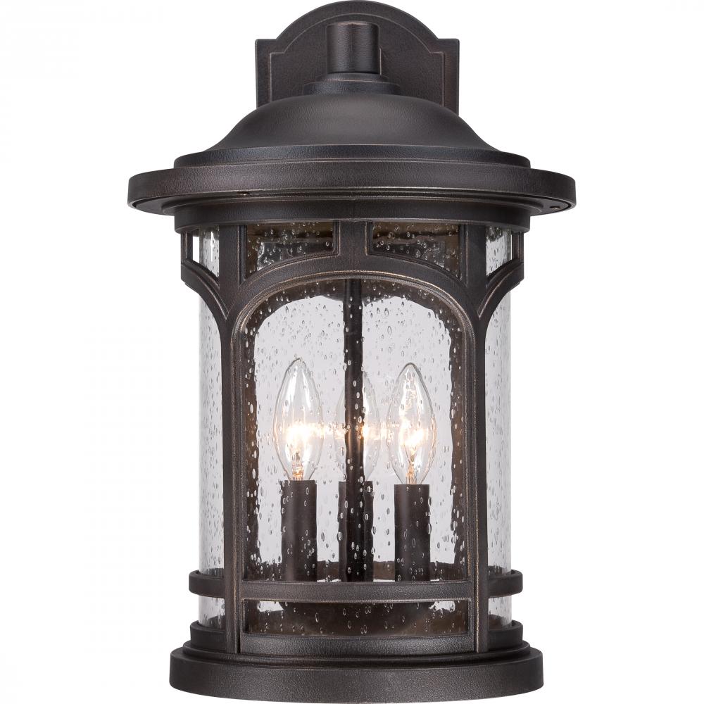 Marblehead is a rich masculine outdoor series and a welcome addition to the Quoizel Coastal Armour Collection. The stately form of the metal arches gives the clear seedy glass a window like appearance. Made from a new weather resistant outdoor composite