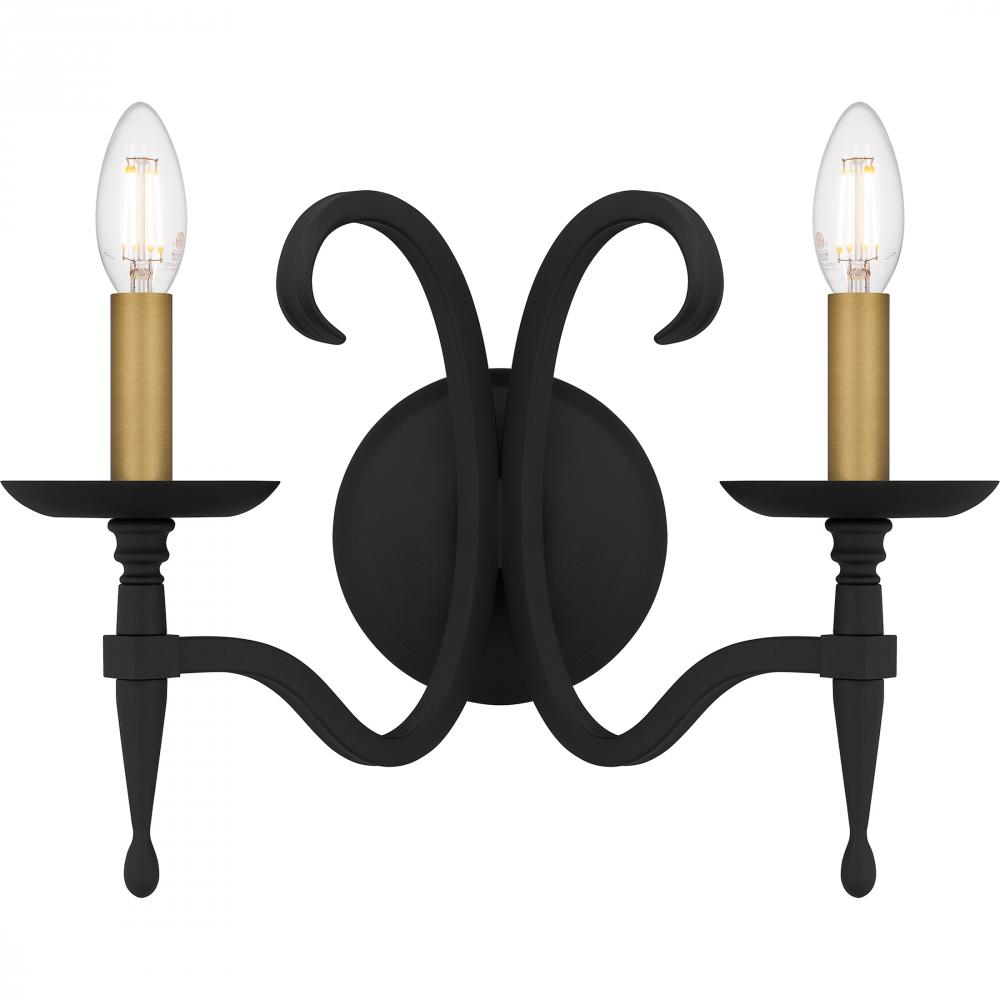 Elegant scrollwork and aged brass accents make Octavia a standout in any room. The earth black silhouette features delicately curving arms and aged brass candle sleeves for a pop of shimmering gold. Octavia is available as a chandelier or wall sconce, and