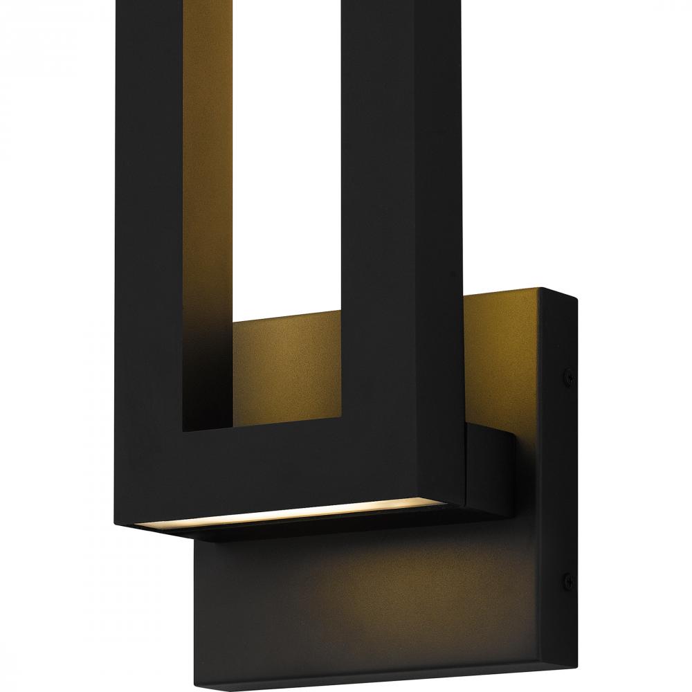 Pompeii outdoor wall lanterns add sleek architectural design to any homes exterior. The simple, open geometric design is paired with an earth black finish for a bold contemporary look. An integrated LED light source adds a beautiful backlit glow, creating