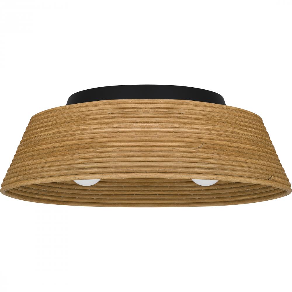 Part of the Quoizel Naturals series, the Zahara flush mount exemplifies modern farmhouse style. The natural bamboo shade adds a touch of global, bohemian style while casting a warm ambient glow. With a contrasting matte black finish, the Zahara ceiling lig