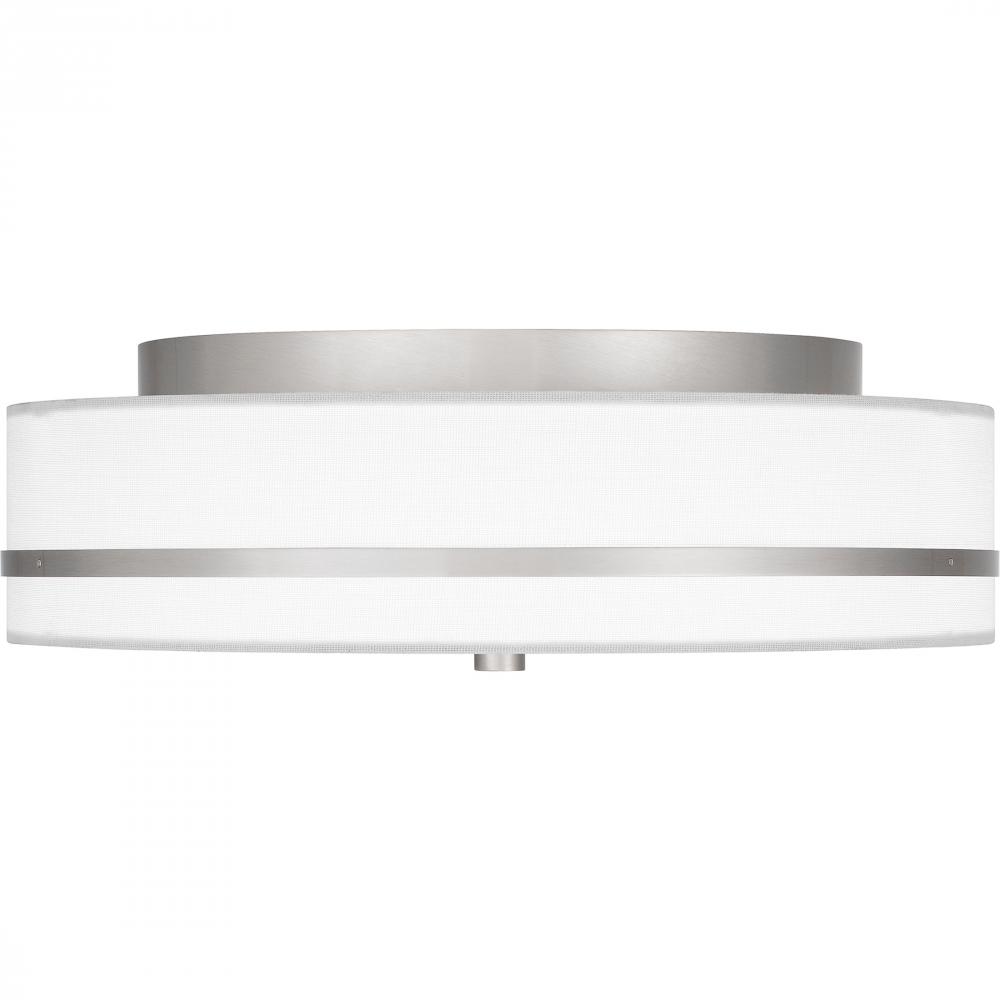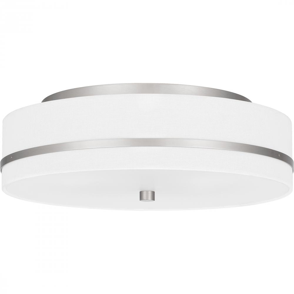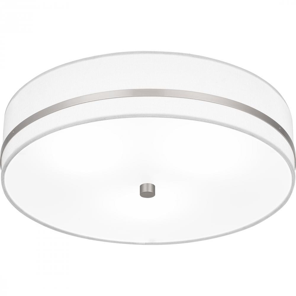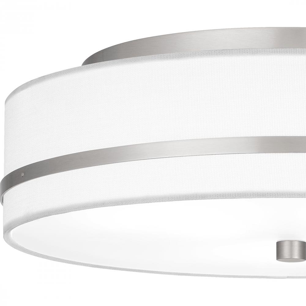Illuminate your home with the clean, transitional styling of Belotte. The flush mount ceiling light features an off-white fabric shade, paired with simple metal accents in your choice of brushed nickel or matte black. The result is a classic, minimalist de