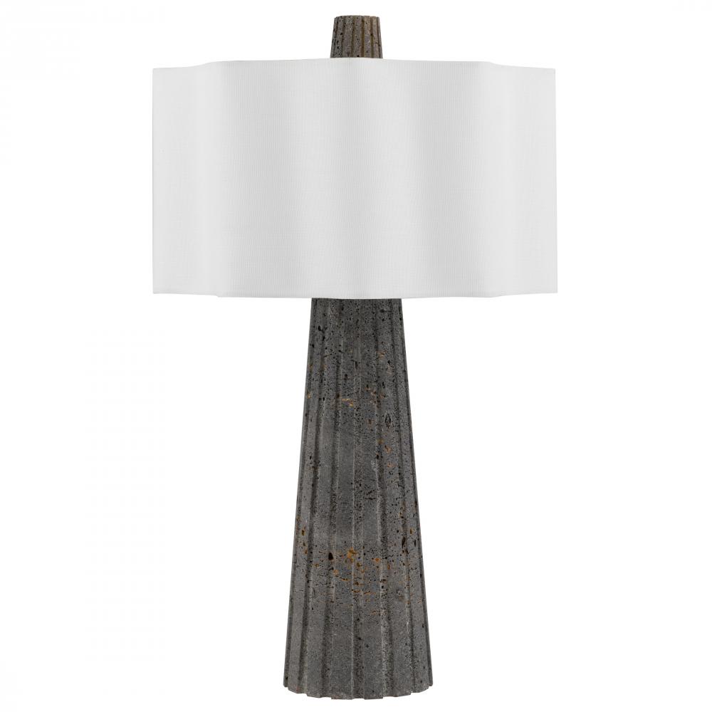A sculptural beauty with quiet strength, the Gio Table Lamp pairs bold design with soft elegance. Its fluted travertine base in matte black offers grounded sophistication, while the uniquely shaped fabric shade casts a gentle, ambient glow—like candlelig