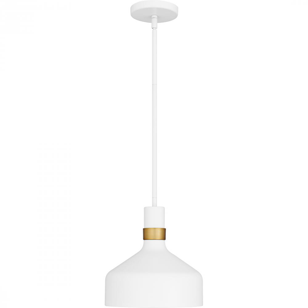 Elevate your space with the Arbor mini pendant, where modern design seamlessly blends with industrial flair. This chic fixture showcases a sleek metal shade available in either matte black or matte white, each adorned with a subtle gold band for a hint of