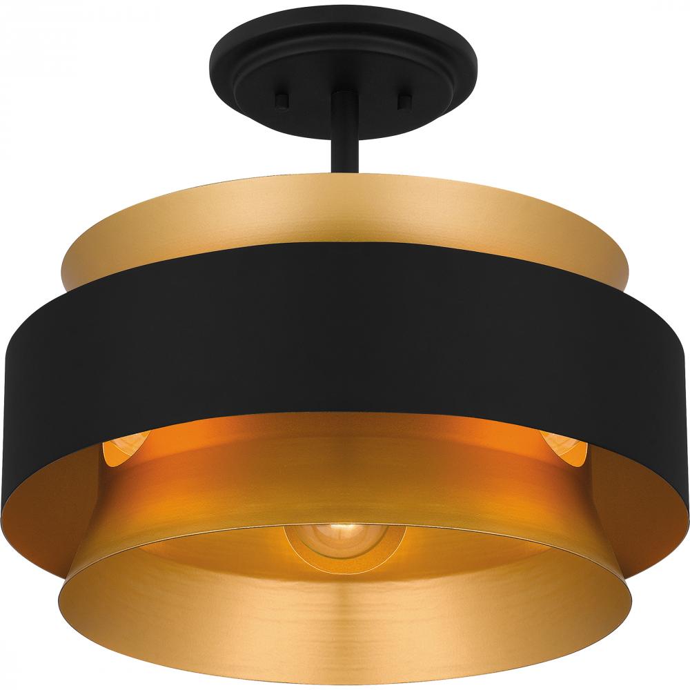 Bask in the warm glow of Hagley. This three-light semi-flush mount features a gleaming metal shade surrounded by a thick earth black band and matching canopy. With its bold materials and enduring silhouette, Hagley works in modern and traditional spaces al