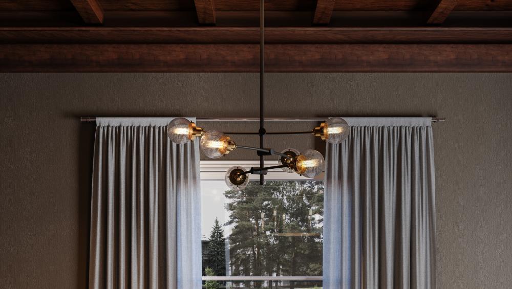 Youll find yourself captivated by the possibilities of the Trance collection. The abstract lines and spherical globes are a nod to the recently revived sputnik style, while the Western bronze finish and painted brass sockets offer an industrial vibe. Addin