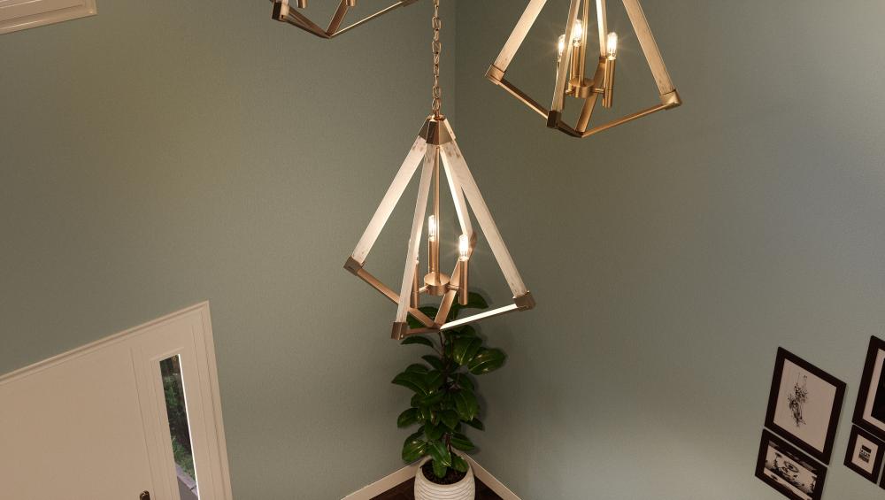 The bold lines and vintage finishes of the Viewpoint are a match made in design heaven! The inverted diamond silhouette features a faux wood frame in a whitewashed finish that is complemented by the soft brass hue of the accent caps and center column. Elon