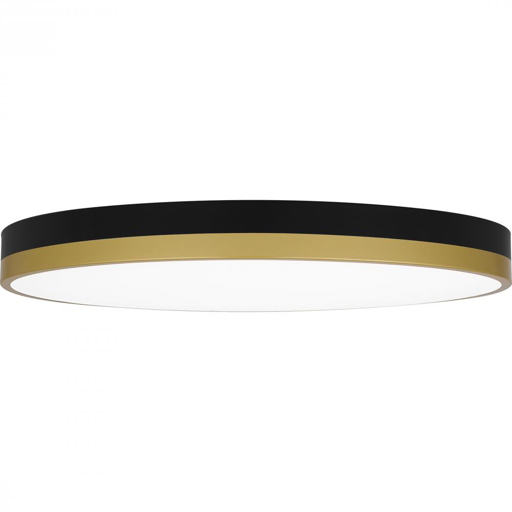 The Weldin flush mount is as smart as it is sleek. This design features an integrated light source for a dependable glow in entryways, hallways, or home offices. Two color palettes — either matte black and gold, or matte black and white — complement a