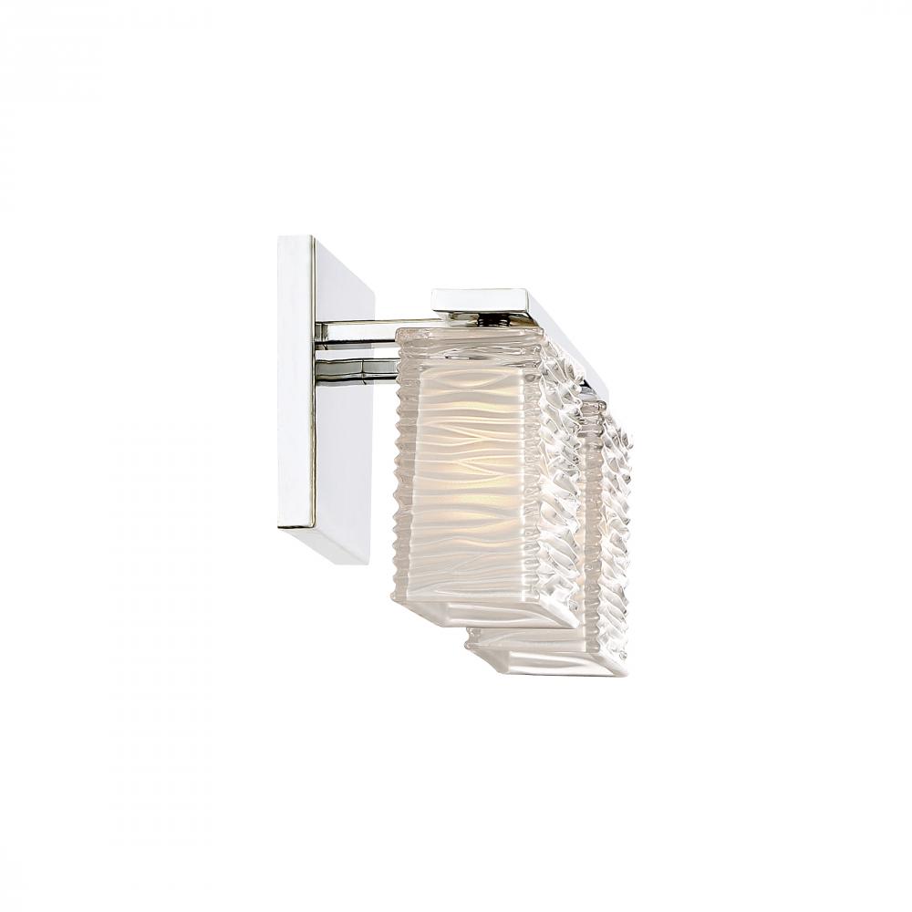 With a unique glass pattern and simple base, the Westcap bath light collection is contemporary with a twist. The beautiful waving pattern of the thick clear glass is accented by the sandblasting on the inside of the shades, creating a unique spa-like ambia