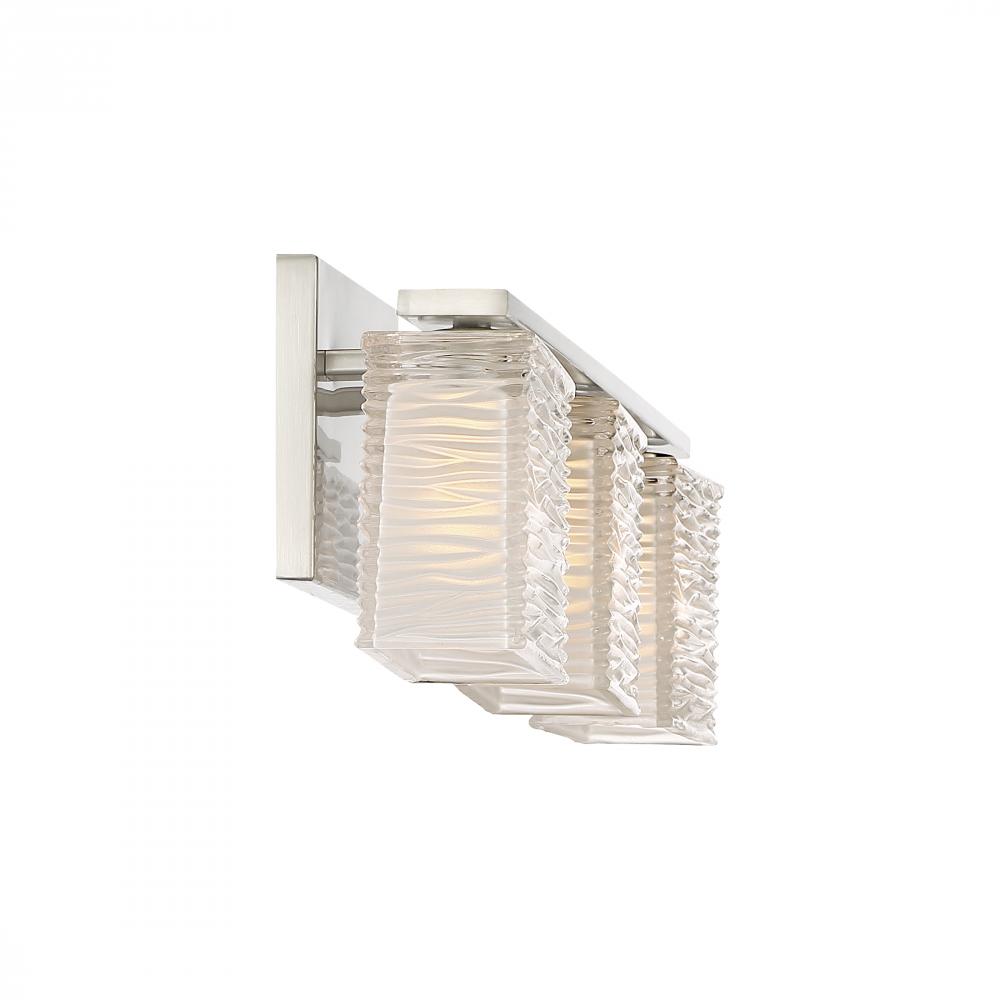 With a unique glass pattern and simple base, the Westcap bath light collection is contemporary with a twist. The beautiful waving pattern of the thick clear glass is accented by the sandblasting on the inside of the shades, creating a unique spa-like ambia