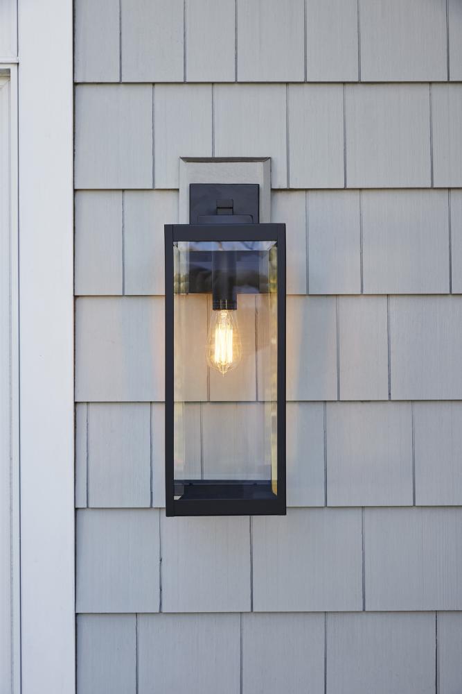 The clean lines and hand-riveted accents make the Westover lantern collection a modern industrialists dream. A long rectangular framework provides an unobstructed view of the lanterns sleek interior. The choice of earth black, antique brass, industrial br