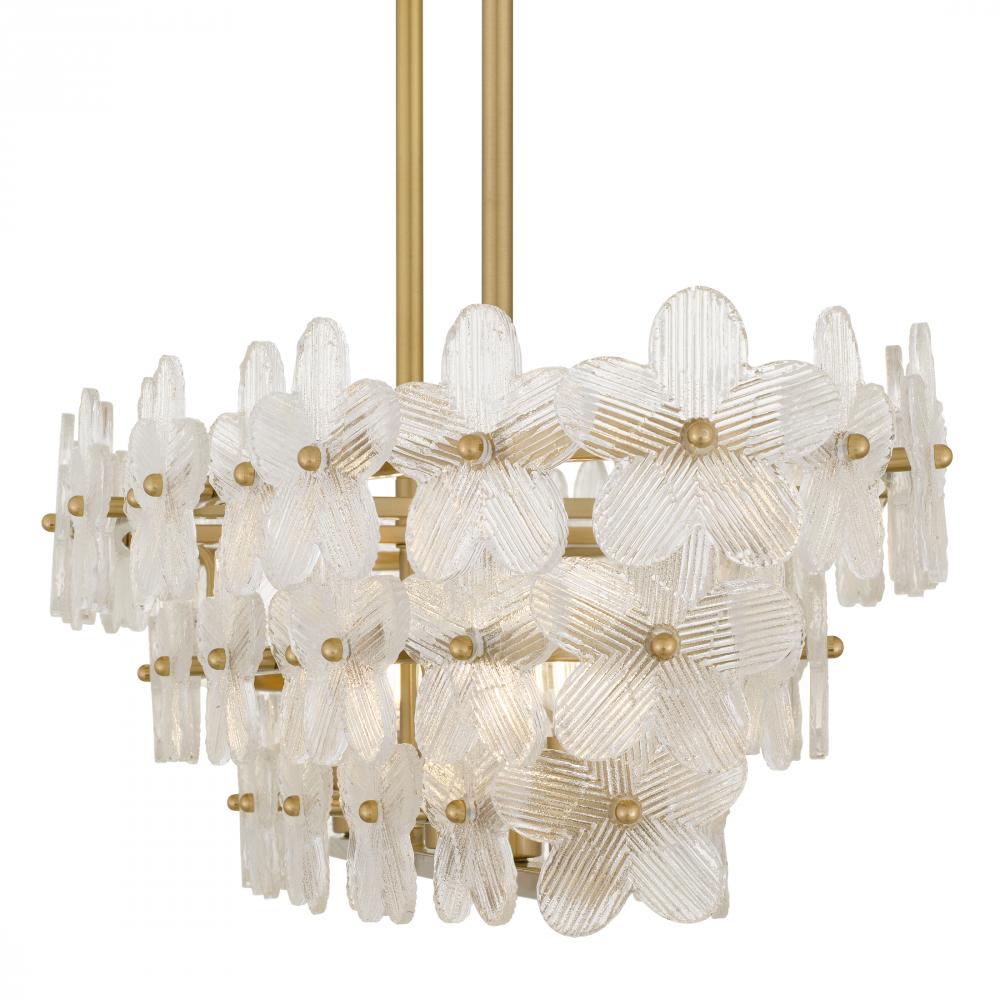 The Wright Collection is a celebration of whimsy and elegance. Each piece pairs a radiant brushed gold finish with delicate clear textured glass shaped like blooming petals, casting a soft, sparkling glow. Whether illuminating a dining room, entryway, or k