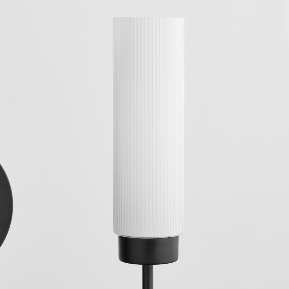 Jerome is a transitional design with a historical inner character. Its wire-like arms carry a lightness and borrow inspiration from the Swedish school and early American styles. Jerome is comfortable bringing a regal presence to spaces across various genres. Finished in matte black with white milky glass, the Jerome wall mount comes in 1 or 2 light arrangements.
