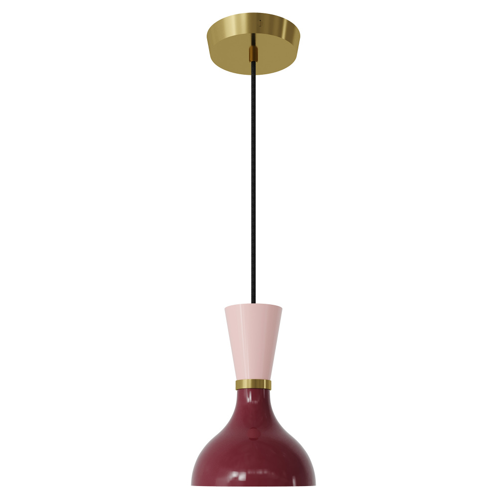 Modern Brass Pendant w/ Sugar Plum and Rose Water Painted Shade