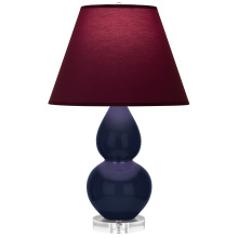 Midnight Blue Glazed Ceramic with Lucite Base Small Double Gourd Accent Lamp with Pearl Dupioni Fabric Shade - Our Double Gourd collection features a simple but gracefully curving silhouette. Available in a wide array of vibrant colors and several different base finishes.