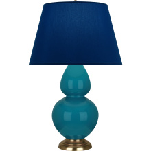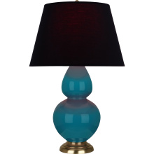Peacock Glazed Ceramic with Antique Natural Brass Finished Accents Double Gourd Table Lamp with Tea Green Fabric Shade with Taupe Lining - Our Double Gourd collection features a simple but gracefully curving silhouette. Available in a wide array of vibrant colors and several different base finishes.