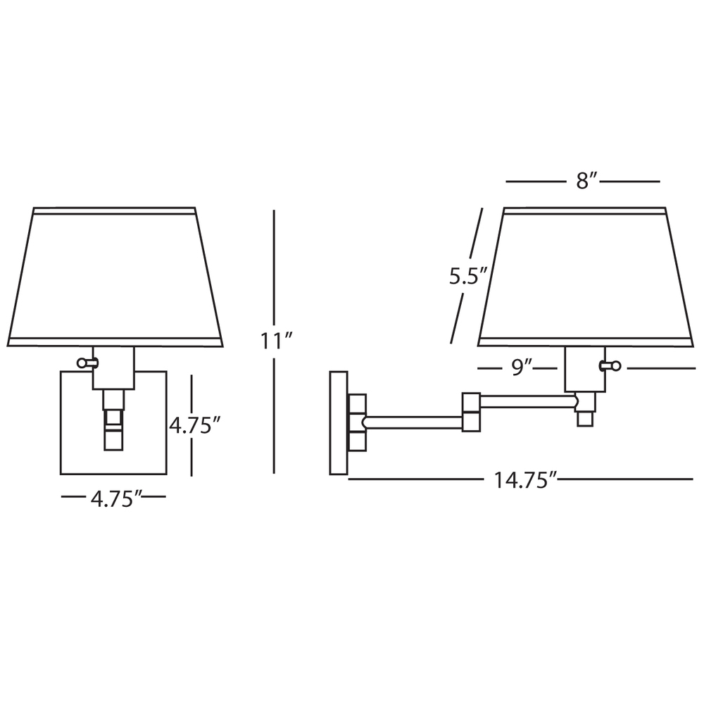 The Real Simple collection is all about straightforward design and functionality. Able to accommodate any contemporary space, pieces in this collection are go-to choices for practical yet stylish lighting solutions. - Stardust White Powder Coat Finish Over Steel Real Simple Wall Swinger with White Mont Blanc Parchment Shade with Bottom Diffuser