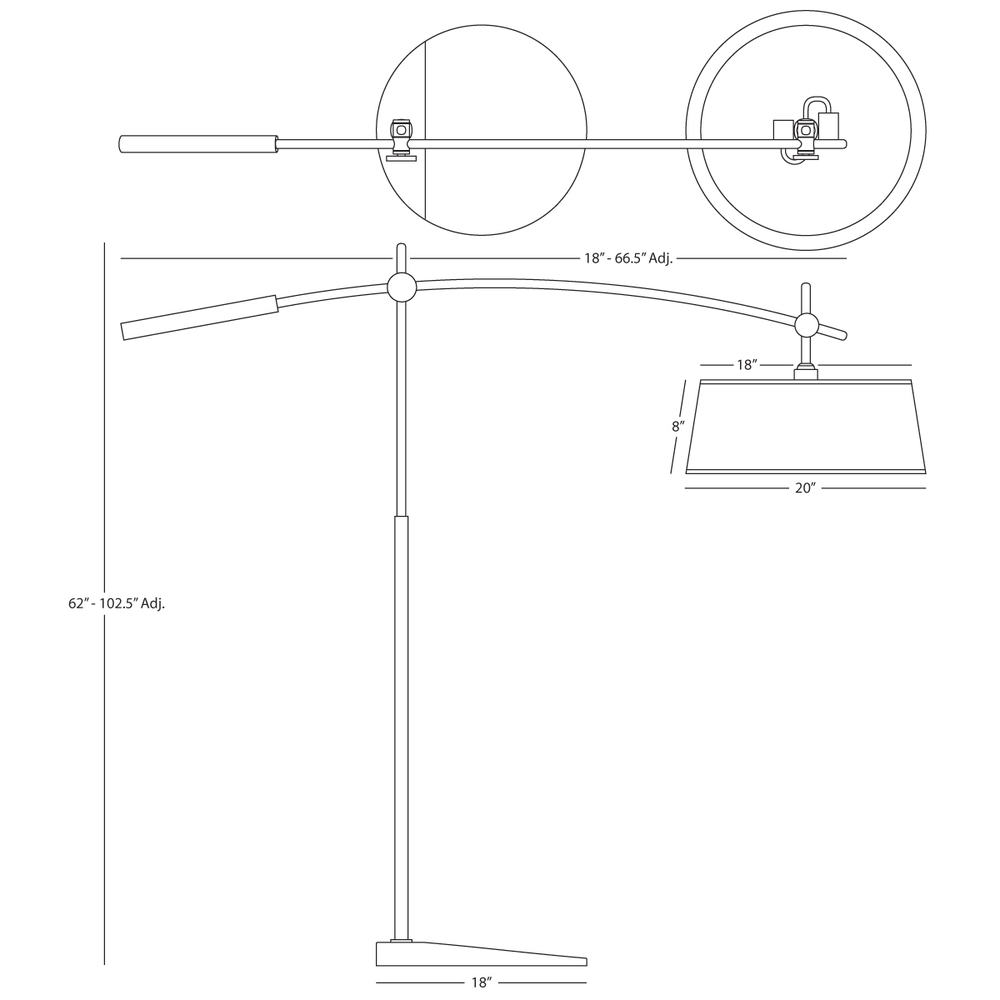 Designed by Rico Espinet for Robert Abbey, our Miles collection was created with functionality and style in mind A sleek metal finish, oversized adjustment knobs and straightforward geometry make Miles perfect for your contemporary setting. - Brushed Nickel Finish Rico Espinet Miles Floor Lamp with Open Weave White Linen Shade with Bottom Diffuser