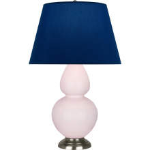 Rose Water Glazed Ceramic with Antique Silver Finished Accents Double Gourd Table Lamp with Pearl Dupioni Fabric Shade - Our Double Gourd collection features a simple but gracefully curving silhouette. Available in a wide array of vibrant colors and several different base finishes.