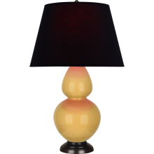 Sunset Yellow Glazed Ceramic with Deep Patina Bronze Finished Accents Double Gourd Table Lamp with Pearl Dupioni Fabric Shade - Our Double Gourd collection features a simple but gracefully curving silhouette. Available in a wide array of vibrant colors and several different base finishes.