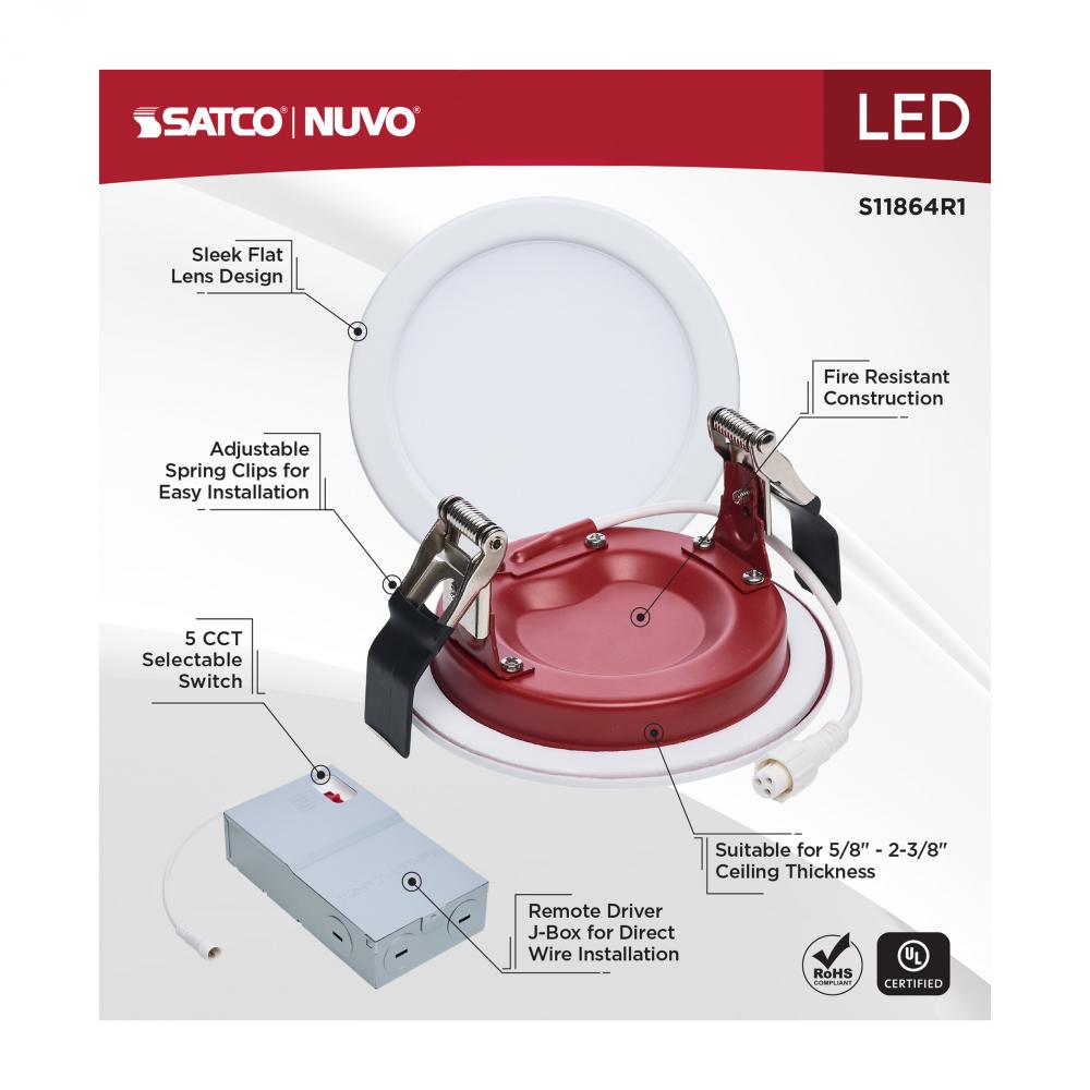 SATCO NUVO'S S11864R1 Fire Rated Recessed Downlight is engineered for fire-resistant ceiling construction and certified for 2-hour fire protection when installed in most floor-ceiling assemblies, including UL Designs L505, L511, L536, L538, L541, L556,