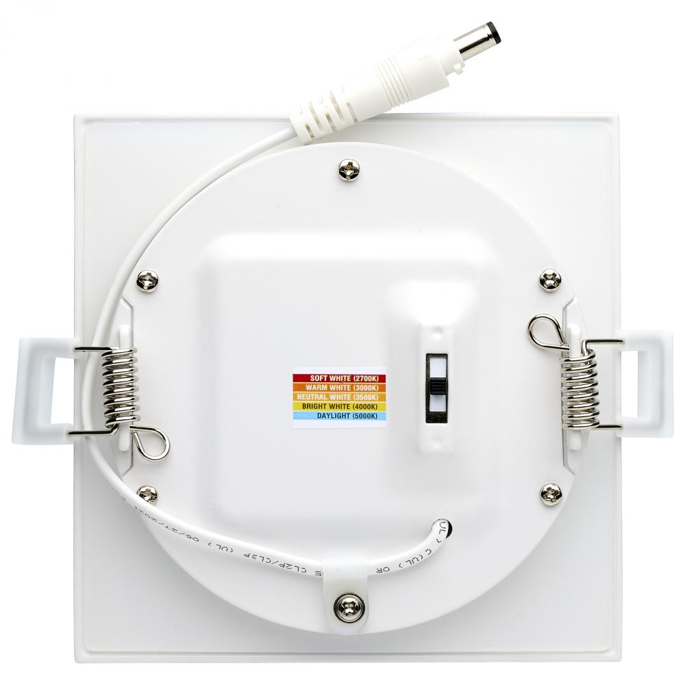 10 Watt LED Direct Wire Downlight; Edge-lit; 4-Inch; CCT Selectable; Square; Remote Driver