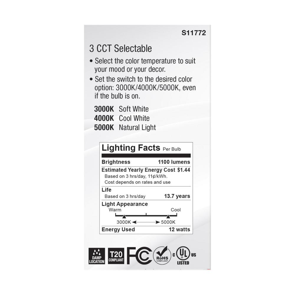 12 Watt A19 LED; Medium Base; CCT Selectable; White Finish; 90 CRI; 120 Volt