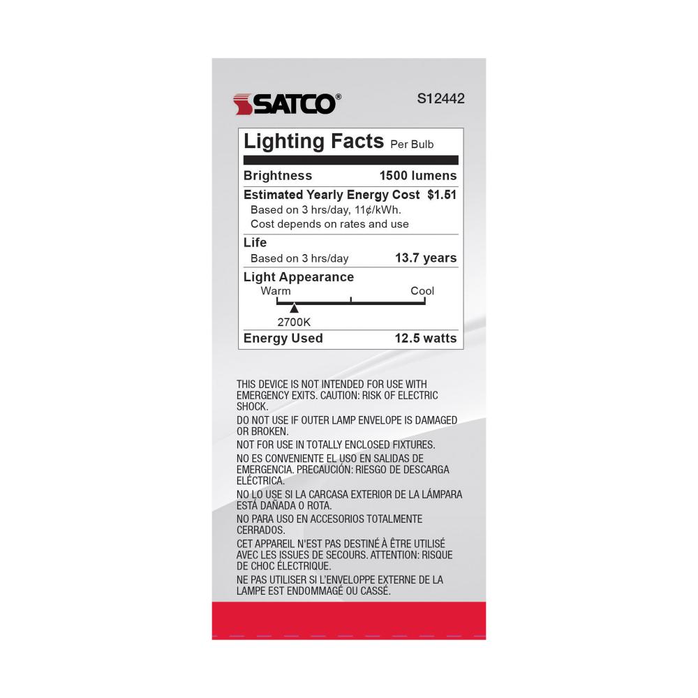 Satco's S12442 10.5-watt LED lamp is traditional, yet contemporary with its clear finish and energy saving LED technology. Elegantly illuminate any room in the house with this 4 pack of dimmable bulbs. Sophisticated and modern, this lamp delivers 15,00