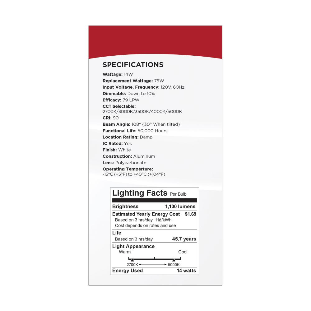 14 Watt; 6"; Directional Low-Profile Downlight; CCT Selectable; 120 Volt; White Finish